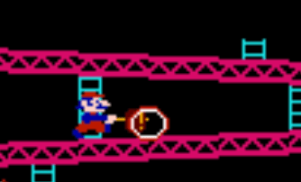 Donkey Kong is an ideal arcade game according to the parameters defined in Richard Rouse’s “Game Analysis: Centipede” piece. You play as Mario, traversing different linear platforms, avoiding the obstacles being thrown at you by Donkey Kong as you make your way to Princess Peach. Your controls are fairly limited here, and the game relies largely on your timing as a player. As a new gamer in general, this was definitely a challenge! After 30 minutes of play, I still wasn’t able to get past the first platform. The one “defense” you have against the onslaught of obstacles being tossed your way is a hammer. The first thing that stands out to me about this game is the infinite play feature. Rouse says that “having an unwinnable game makes every game a defeat for the player (463)” which felt apparent to me as someone new to the game, and arcade games in general. I have very little experience with games, but this was one of the more aggravating gaming experiences that I’ve had, due to this “unwinnable” nature that Rouse comments on. I think it’s very likely that the infinite play is more fun in a social environment like an arcade with a crowd of friends surrounding you. At home, losing over and over just makes you want to turn the game off. There’s an inherent dissatisfaction with the game experience. Knowing that there’s no real way to win makes the gaming experience sort of sadistically amusing, but only up to a point. Put simply: I found it fun, until I didn’t! It’s possible that the emulator might drag the playing experience down a bit, too. The game allows you to score points after clearing hurdles and avoiding certain obstacles, which Rouse references as one of the most important elements to a successful arcade game. You’re rewarded for getting better at the game, which does encourage the player to keep playing. Rouse argues that classic arcade games should have no story, which this game adheres to. Narratively speaking, it’s incredibly simplistic: advance up the platforms to beat Donkey Kong and win Princess Peach back from his clutches. The narrative never progresses beyond this basic set up, and never requires the gamer to engage with new elements of world building, or new characters. Players of the game might be bringing outside knowledge of the Nintendo universe, which could very well add to the narrative experience of the game, but none of that is baked into the gaming experience on its own in Donkey Kong.